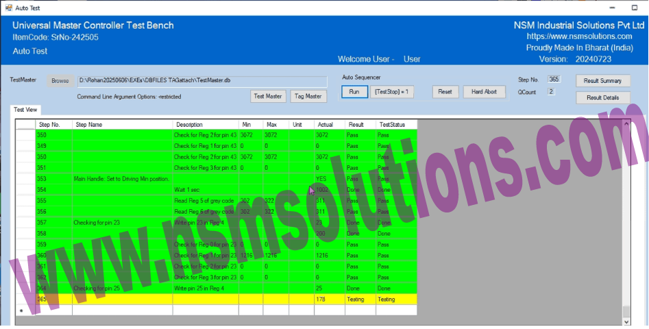 You receive immediate Pass/Fail results for every action, enabling efficient validation of the controller’s behavior.